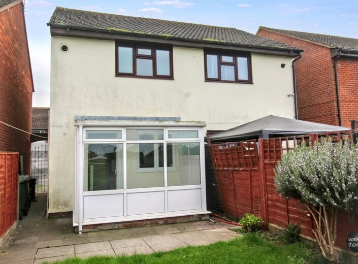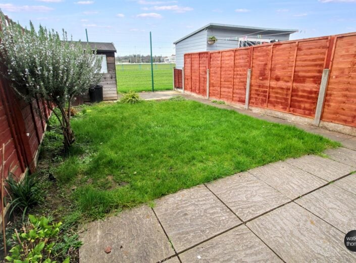 At the front of the property is a low brick wall with lawn area and path leading to the front door. A shared side gate gives access to a path which leads to the rear garden.