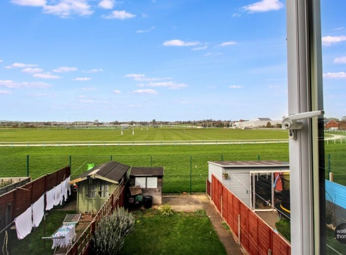 To the rear of the property is a patio area leading to a lawn with interspersed shrubs. There is a small garden shed. The garden is bounded by fencing. At the bottom of the garden is a superb view of Hereford Racecourse.