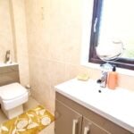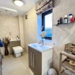 With front aspect double glazed window, suite comprising low flush WC, vanity wash hand basin, shower with glass screen, thermostatically controlled shower and rain water shower head, fully tiled wall surround, extractor fan, heated towel rail, inset spotlights and vinyl flooring.