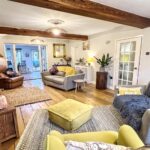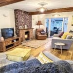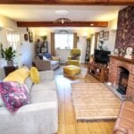 With front and side aspect double glazed windows, wood burning stove with brick surround, TV unit, two panelled radiators, six wall lights, exposed floorboards and rear aspect double glazed french doors to the;