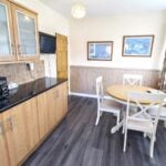 With side aspect double glazed window, panelled radiator, work surface with tiled splash backs, wall and base mounted units, smoke alarm, laminated flooring and access to the kitchen.