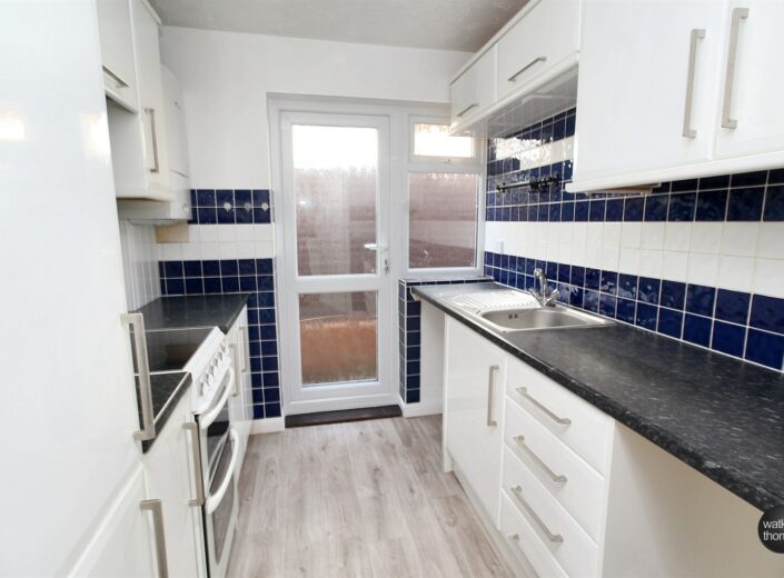 Side aspect double glazed window. With a range of units comprising stainless steel sink drainer unit, work surfaces, tiled splash backs, base units under with matching wall units, space for cooker, plumbing and space for washing machine, space for under counter fridge, wall mounted gas central heating boiler, vinyl flooring and side aspect double glazed door.