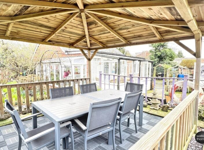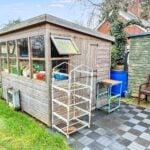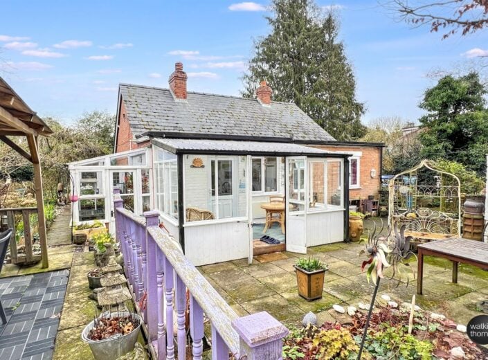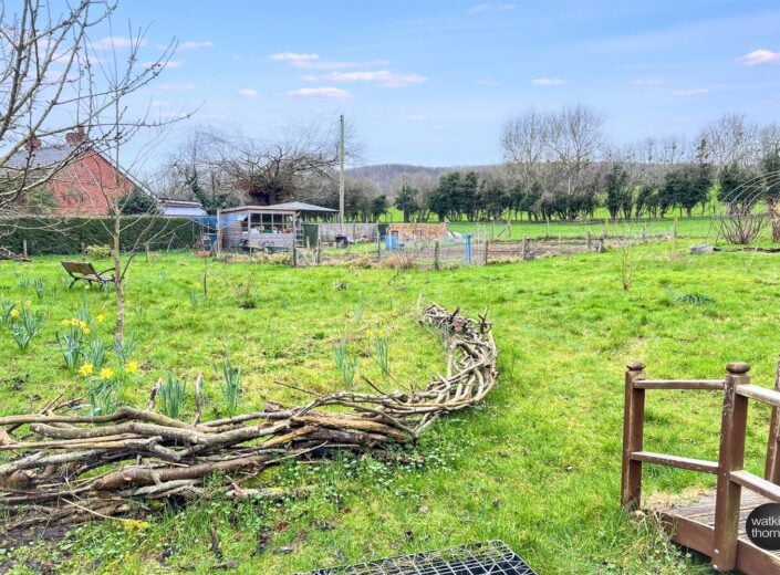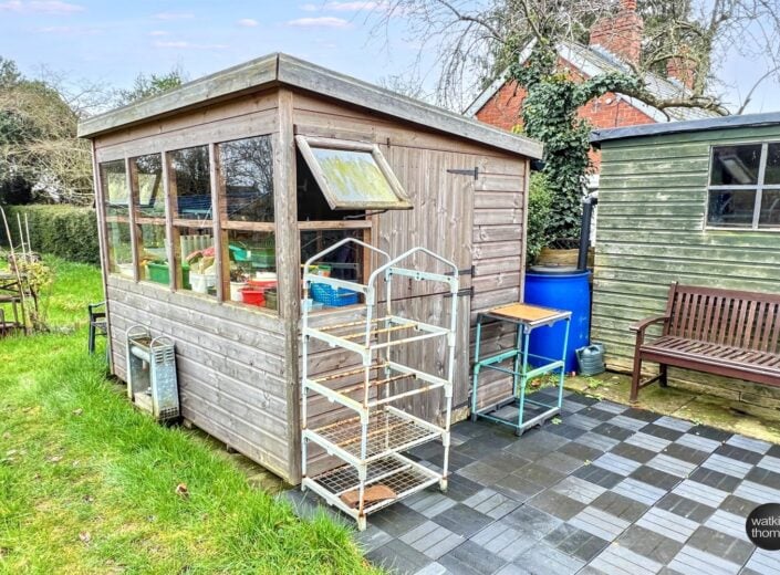 The property is approached from the A49 through a pair of wrought iron gates which leads to a driveway with turning area and the GARAGE STRUCTURE (15' 7 by 10' 9) with additional storage space. To the right hand side of the driveway at the front of the property, there is a lawned garden area with individual shrubs and planted rockery borders featuring spring bulbs and mature trees. There is also a single garden room structure approached through an archway with climbing plants over. Access can also be achieved at the right hand side of the residence. From the right of the residence there is a stepping stone pathway and planted beds and borders divided by brick pathways and the hard landscaped rear garden area, comprising a paved patio area with stone borders surrounding, there is a mature crowned copper beech tree and seating under a PERGOLA (9' 4 by 9' 4). The property also has the benefit of a lean to greenhouse (10' 3 by 5' 5) and two out houses which are approximately 10' 4 by 4' 9 and 6' by 6'. From the side garden area, there is an opening to an additional garden area which is approximately a 1/4 of an acre and is laid to lawn with vegetable plots. Within this area there is a stream with bridge over, a garden store 8' by 6', which has a part glazed elevation. At the rear of the property there is the drainage system and a further garden store (5' 9 by 7' 10).