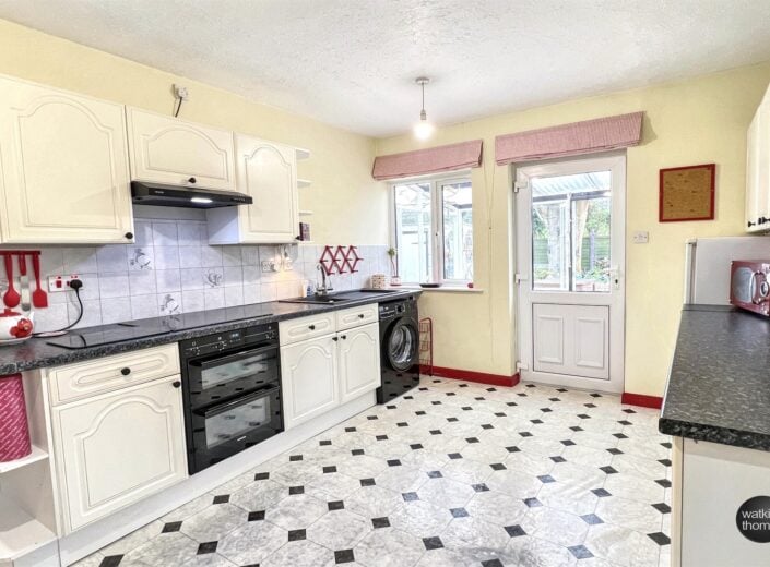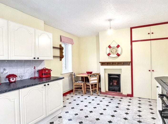 With a double glazed window to the side, double glazed window to the rear and a double glazed door to the lean to conservatory. Fitted base cupboard units with working surface over, tiled surrounds and eye level cabinets. Composite single drainer sink unit with mixer tap, recess with plumbing for washing machine, built in oven with hob over and cooker hood above, recess for freezer and with a feature jet master fireplace. Airing cupboard with insulated hot water cylinder.
