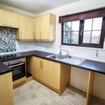 With front aspect double glazed window, a range of units comprising stainless steel sink drainer unit, work surface with tiled splashbacks, base units under with matching wall units, integrated electric oven and hob with cooker hood over, plumbing and space for washing machine, space for upright fridge/freezer and vinyl flooring.