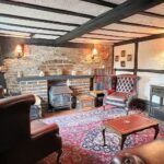 With a leaded, double glazed window to the front with tiled sill, exposed wall and ceiling timbers, expanse of exposed stonework to one wall with brick arch and wood burning stove. Quarry tile hearth, radiator and feature bread oven door with deep wooden seat over and further wooden seat off brickwork. Wall light points, radiator and opening through a timber framed partition to the;