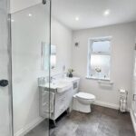 With white suite comprising walk in shower cubicle with a thermostatically controlled shower unit, vanity wash basin with mixer tap and cupboards below, together with WC. Double glazed window, radiator, wall mounted electric heater and doors to boiler cupboard with a wall mounted modern gas fired boiler which provides central heating and domestic hot water.