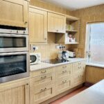 With quarry tiled floor, double glazed windows to three aspects, double glazed door to outside and within the kitchen area there are fitted base cupboards and drawer units with working surface over, tiled surrounds and eye level cabinets. One and a half bowl sink unit with a drainer and mixer tap, recess with plumbing for washing machine, electric hob and double eye level electric oven. Radiator, part timber clad walls and with a door to a pantry cupboard with fitted shelves with cabinet over.