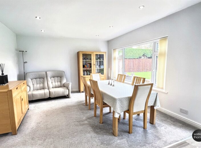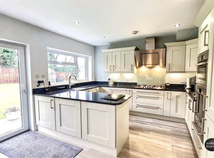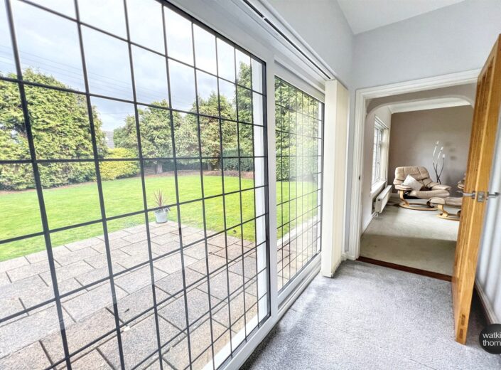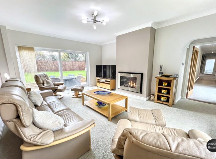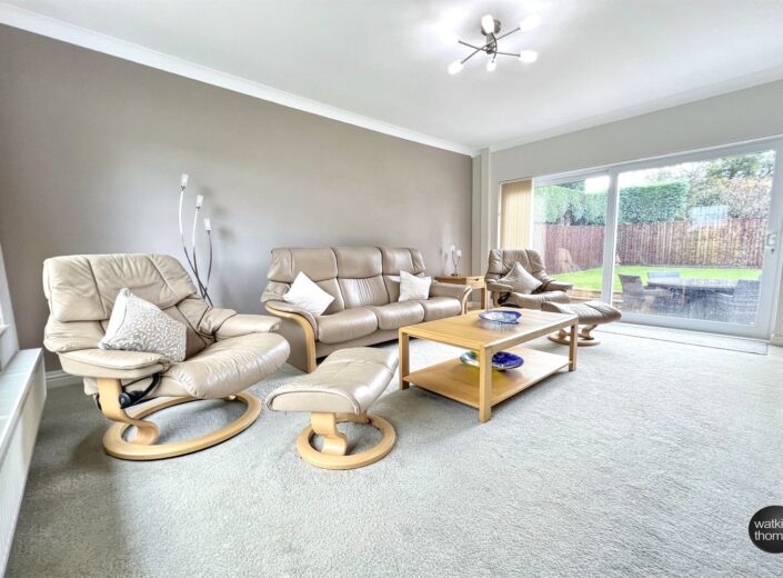 With a picture double glazed window overlooking the rear garden, further double glazed window to the rear and with a double glazed door opening to and overlooking the rear garden. This most comfortable room has sunken ceiling lights, is part carpeted, has a radiator and within the kitchen area an extensive range of granite working surfaces with base cupboards and drawer units with granite upstands and a range of eye level cabinets together with tall storage cupboards including the built in fridge and freezer units, there is a Bosch oven with combination oven/microwave unit over and warming drawer together with a five ring gas hob with glass splashback and Elica cooker hood over, built in Neff dishwasher, one and a half bowl sink unit with mixer tap and with recesses for appliances. Woodgrain effect ceramic flooring.