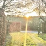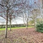 With a leaded window overlooking the parade of silver birch trees, picture rail and radiator.