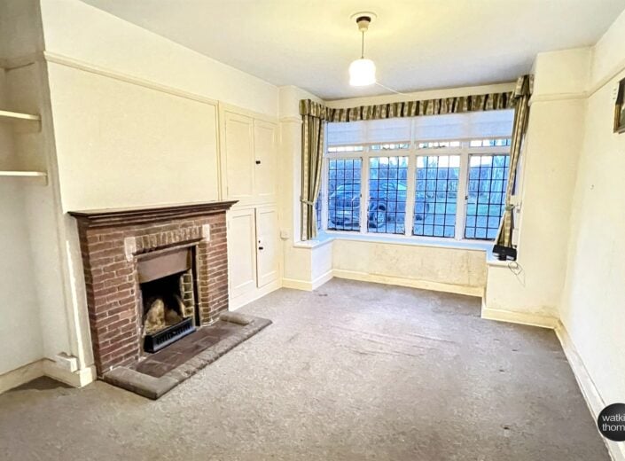 With leaded windows, brick fire surround, picture rail, radiator and built in low and high level cupboards.