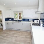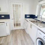 With front aspect double glazed window, a range of units comprising stainless steel sink drainer unit with work surfaces, splash back, base units under, wall unit, plumbing and space for washing machine, space for tumble dryer, space for under counter freezer, panelled radiator and door to the kitchen.