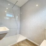 With side aspect double glazed window, shower cubicle with thermostatically controlled shower, low flush wc, pedestal mounted wash hand basin, fully shower boarded surround, extractor fan, inset spot lights, heated towel rail and tiled flooring.
