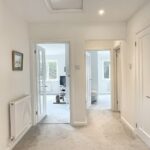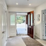 With front aspect double glazed entrance door, side double glazed windows, panelled radiator, access hatch to loft space, smoke alarm, spot lights, storage cupboard, thermostat for central heating and door to utility room.