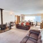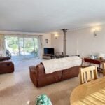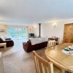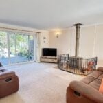 With a picture double glazed window to the front and double glazed sliding patio door opening to and overlooking the rear gardens. Coved ceiling, radiator and with a feature multi fuel stove (Clearview Vision 500) set on a tiled hearth. Wall light points. Door to;