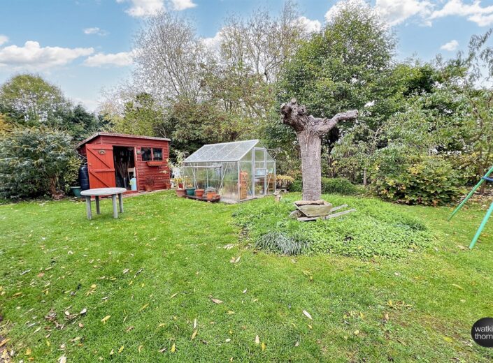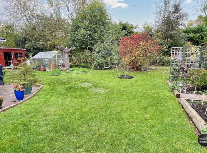 To the right of the driveway there is a planted garden behind a sleeper border and the remainder of the front garden is lawned and features a silver birch and hydrangea. The rear garden, which can be approached from a gate at the side of the property, includes a raised planted border, ornamental pond and a concrete pathway runs to the rear of the property, to a large shaped paving stone patio/sun terrace. The remainder of the gardens are lawned, have feature raised planted beds, numerous individual shrubs and there is also a potting shed (8'1 x 6'), a greenhouse (8' by 6') and a bay of block stores which is about 5' 5 deep and 24' long. The rear gardens are mature and are bordered by a tree lined brook. The property also has the benefit of a timber workshop located at the rear of the garage (14' by 8'9).